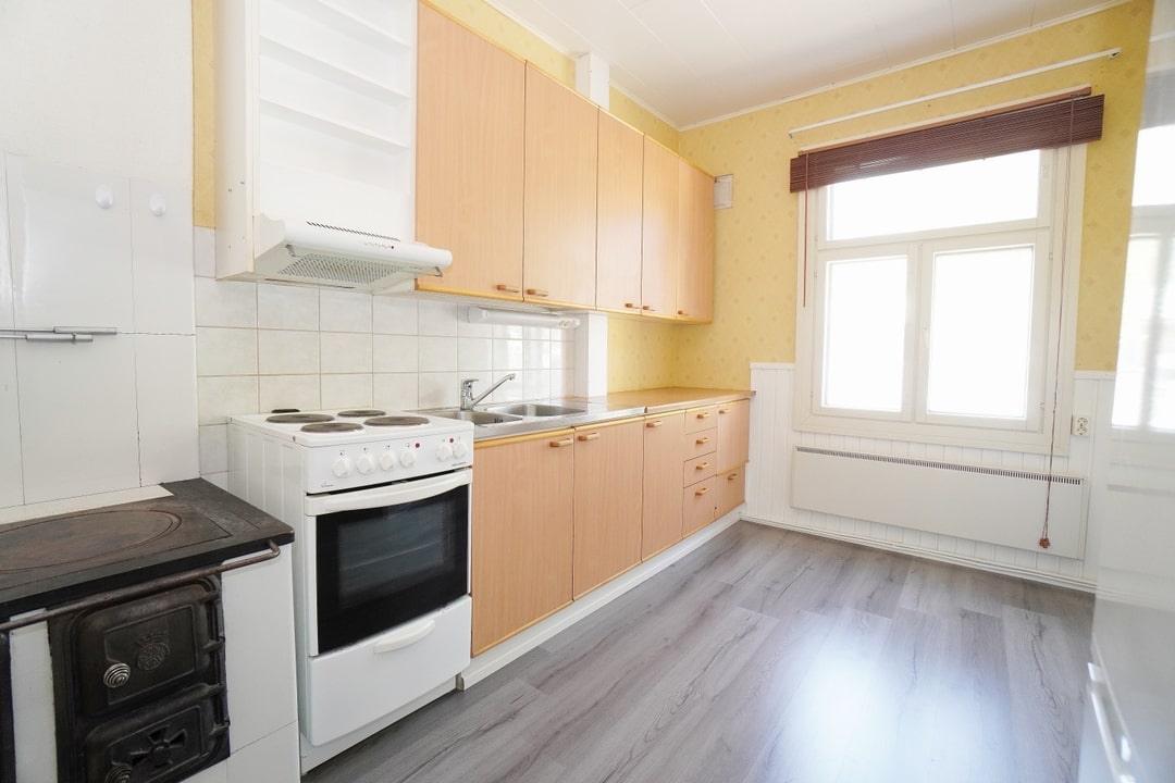 Tunnelmallinen ja kodikas puutalo-osake Viikkarista edullisesti. Asunto on kauttaaltaan perussiistissä kunnossa. Huone on itsessään hyvän kokoinen ja kaappitilaa on reilusti koko seinän mitalta. Keittiö on siisti kokonaisuudessaan mm. kaapit ja kodinkoneet. Keittiön keskipisteenä on vanhan ajan leivinuuni, joka on toiminnassa ja käytettävissä lämmönlähteenä. Kylpyhuoneessa on liitännät pesukoneelle.