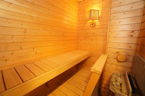 Kylpyhuone on tilava ja sen yhteydessä on oma sauna. Pyykinpesukoneelle on liitännät valmiina.