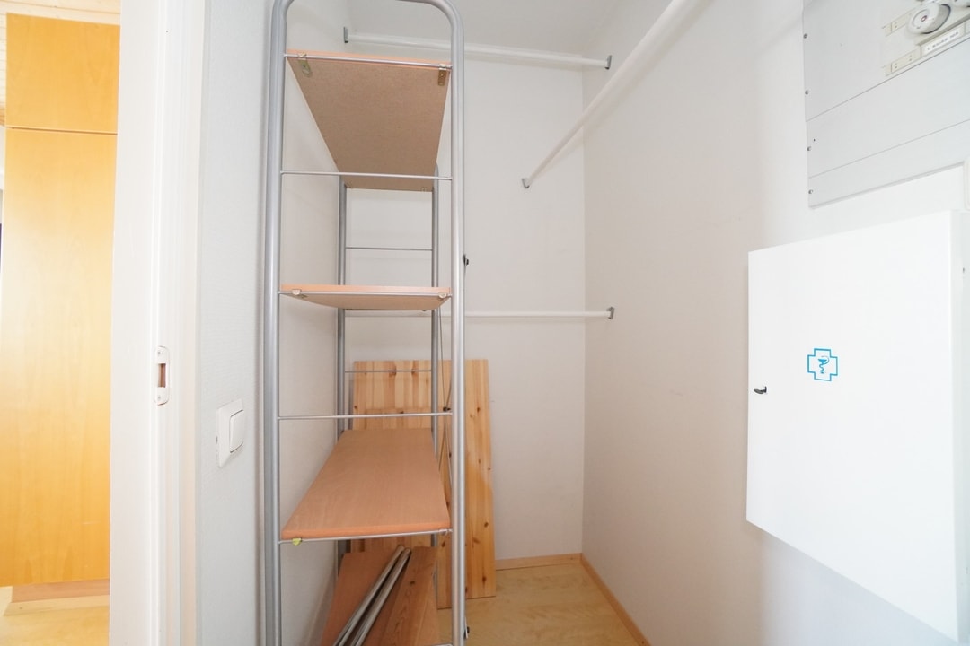 Makuuhuoneeseen mahtuu parisänky ja sieltä löytyy hyvin kaappitilaa. Eteisestä löytyy myös säilytystilaa peiliovikaapistojen ansiosta. Lisäksi asunnossa on erillinen vaatehuone.