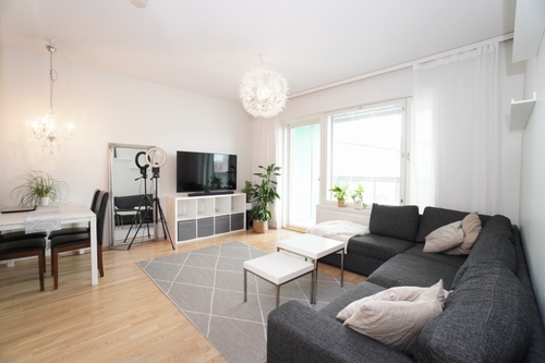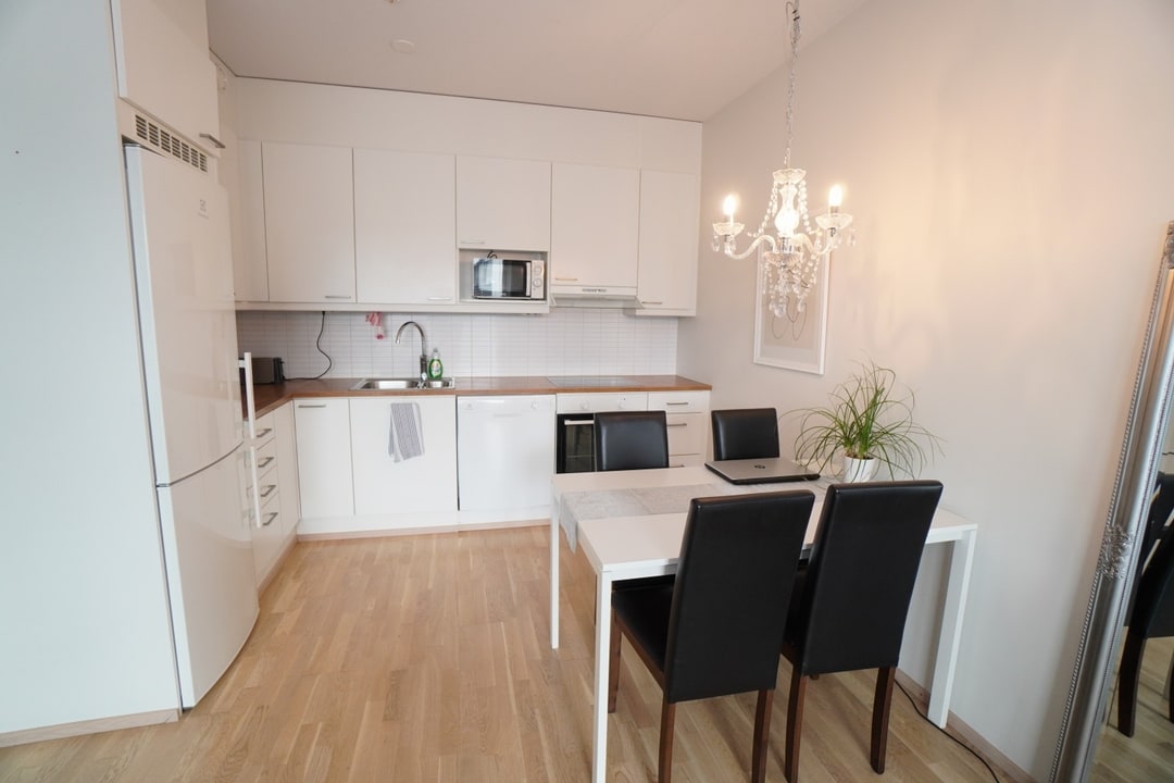 Hieno asunto, joka on siistissä kunnossa. Toimiva pohjaratkaisu ja siistit pinnat tekevät asumisesta viihtyisää. Tilava kylpyhuone, jossa on liitännät pesukoneelle. Keittiössä on reilusti kaapistoja ja modernit kodinkoneet, mukaan lukien astianpesukone. Avokeittiö ja olohuone toimivat saumattomasti yhdessä. Iso lasitettu parveke kuuluu tähän asuntoon.