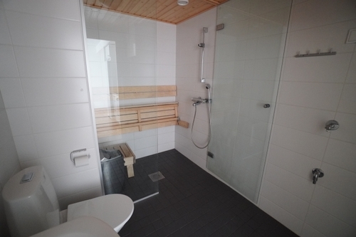 Keittiössä keraaminen liesi, integroitu uuni, astiapesukone sekä jääkaappipakastin, eli kaikki mitä laadukkaaseen elämiseen tarvitset. Tilavassa kylpyhuoneessa on mm. oma selkeä paikka pyykinpesukoneelle sekä kylpyhuonesauna. Makuuhuoneessa liukuovi + koko seinän kokoiset kaapistot.