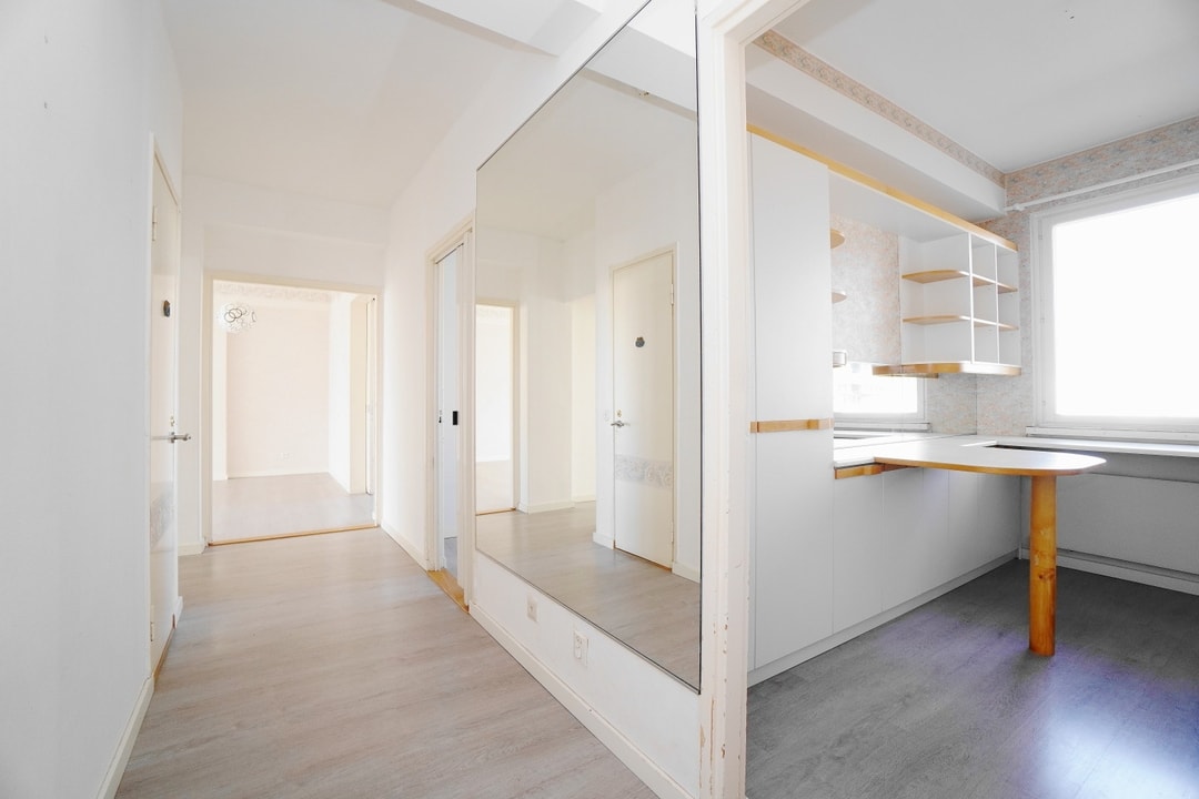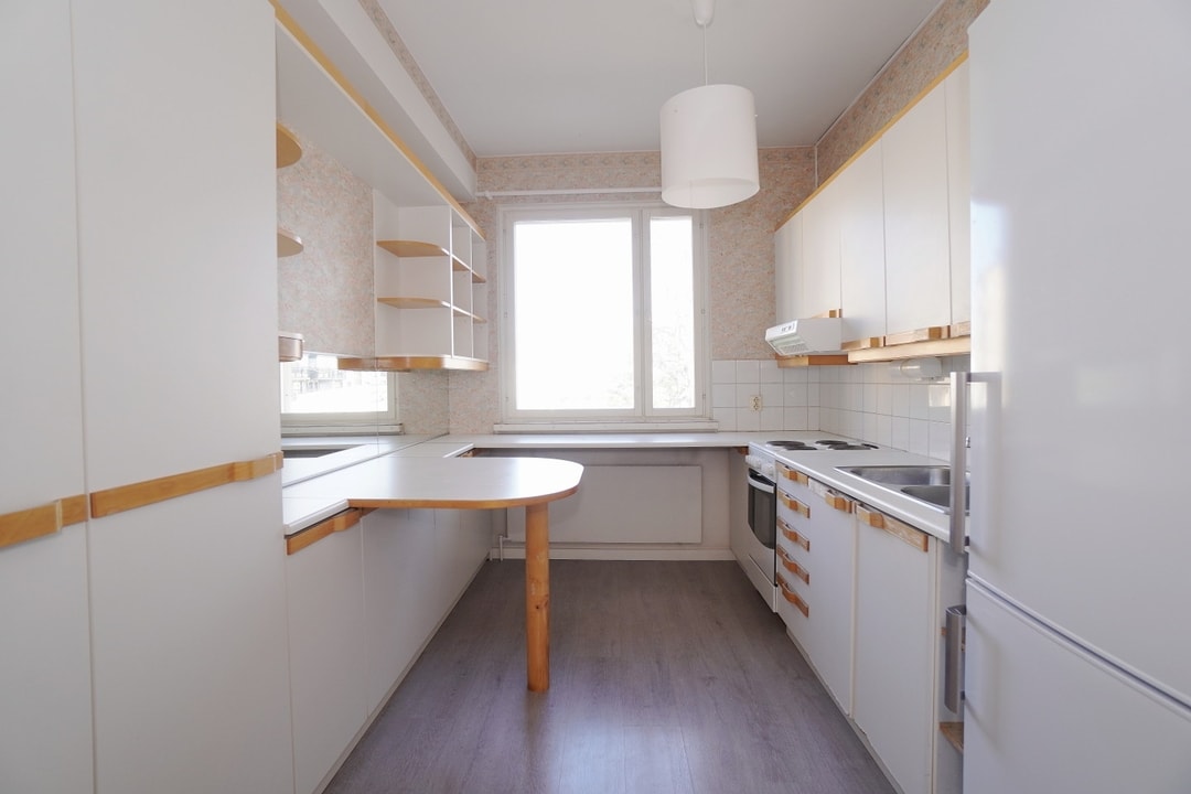 Asunnossa on peräti kolme erillistä makuuhuonetta, joissa on hyvin kaappeja säilystä varten. Olohuone on tilava ja sen yhteydessä on ranskalainen parveke. Keittiössä paljon kaappi- ja työskentelytilaa ja ruokapöytä mahtuu olohuoneen yhteyteen. Keittiöön tullaan uusimaan kaapinovet. Keittiössä on myös kuvista poiketen astianpesukone.