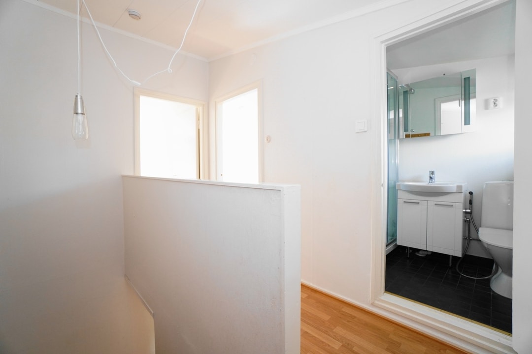 Keskikerroksessa sijaitsevat keittiö, olohuone sekä reilun kokoinen eteistila. Yläkerrasta löytyvät makuuhuoneet sekä erillinen remontoitu kylpyhuone.
