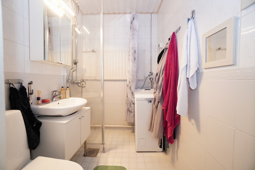 Kylpyhuone on kokonaan uusittu ja pyykinpesukoneelle on liitännät valmiina. Taloyhtiössä on remontoidut saunatilat asukkaiden käyttöön.