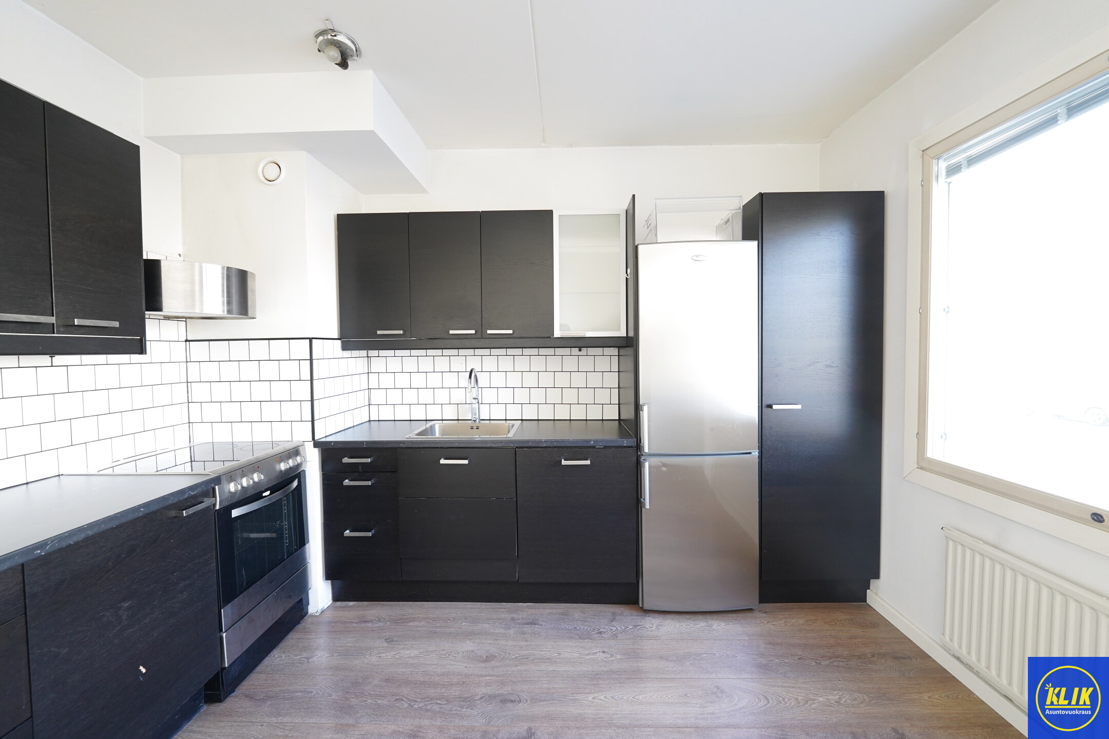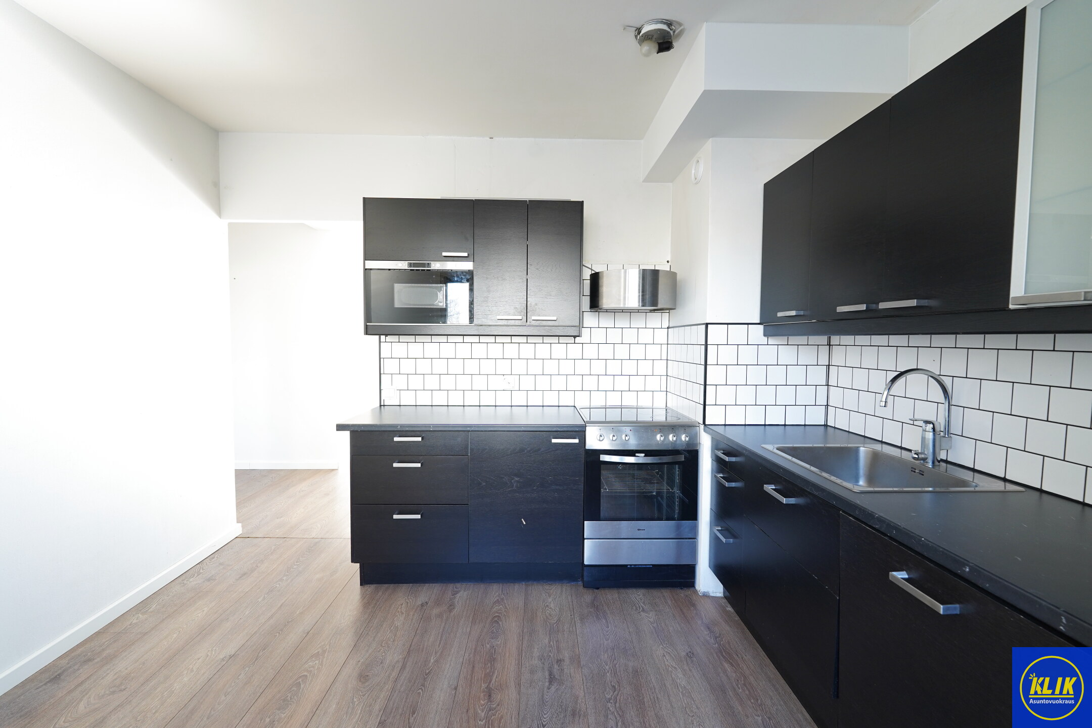 erillinen keittiölaminaattitasot keittiössä, keraaminen- tai induktioliesi; liesituuletin, astianpesukone (60cm), jääkaappipakastin, tilaa isolle ruokapöydälle; paljon kaappitilaa; paljon työskentelytilaa; mikro valmiina keittiössä
