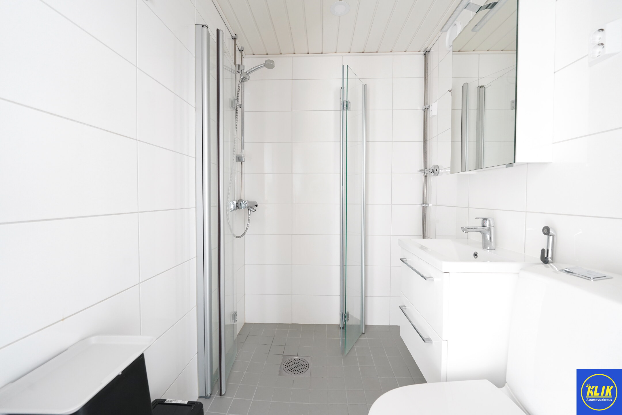 laattalattia; laattaseinä, , allaskaappi; peilikaappi, suihku; suihkuseinä, , , kylpyhuoneessa lattialämmitys