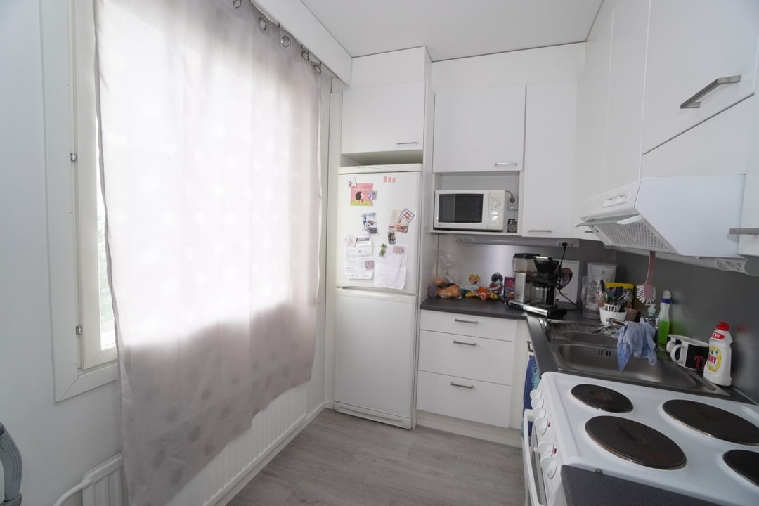 Siisti ja valoisa yksiö, jossa on tehty hiljattain remonttia. Lattiassa on vaalea laminaatti ja keittiöön on vaihdettu valkoiset kaapistot. Alkovissa on hyvä paikka sängylle ja eteisessä on hyvin kaappitilaa. Kylpyhuoneessa on pesukoneelle liitännät ja siistit kalusteet.