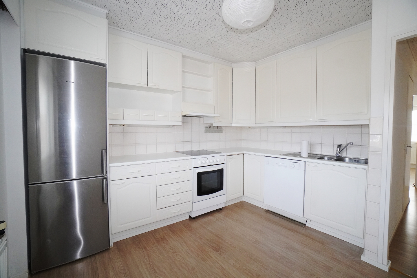 erillinen keittiö, laminaattitasot keittiössä, keraaminen liesi; liesituuletin, astianpesukone, jääkaappipakastin, tilaa isolle ruokapöydälle; paljon kaappitilaa , , , , , ,