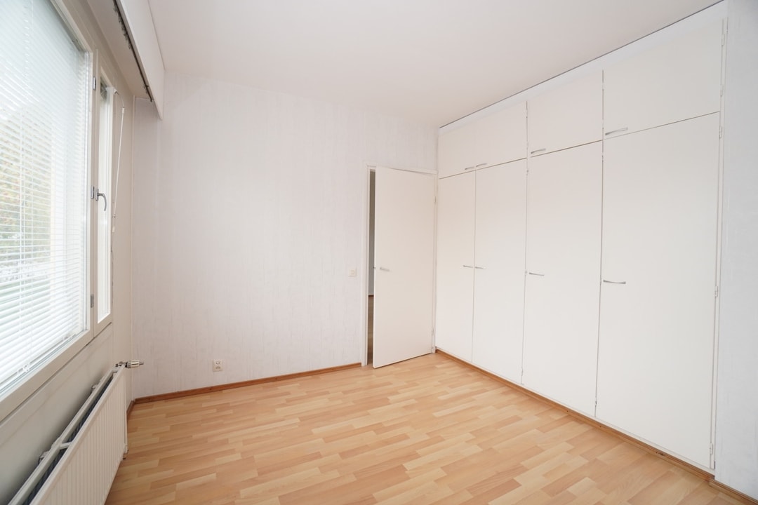 Olohuoneesta on kulku lasitetulle parvekkeelle. Kaikki kolme makuuhuonetta ovat reilun kokoisia. Lisäksi niissä on vaatekaapit säilytystä varten.