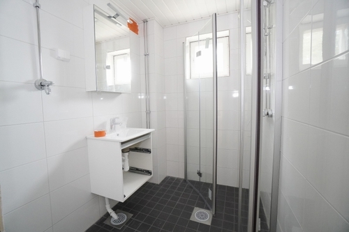 laattalattia; laattaseinä, myös erillinen WC, allaskaappi; peilikaappi; muuta säilytystilaa WC:ssä, suihku; suihkuseinä, pesukonevalmius, lattialämmitys; avattava ikkuna
