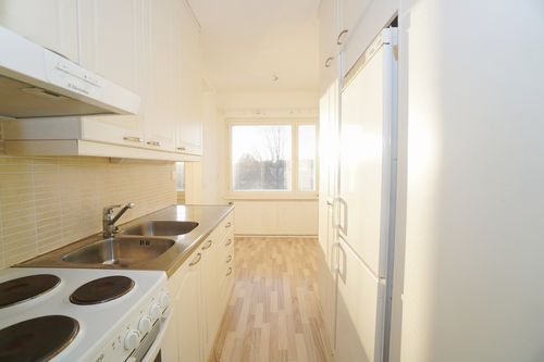 Tämä hieno 4. kerroksen asunto on siistissä kunnossa. Ikkunoista avautuu kaunis puistomaisema ja useat ikkunat tuovat runsaasti luonnonvaloa asuntoon. Neljänteen kerrokseen eivät myöskään kaupungin äänet kantaudu häiritsevästi.