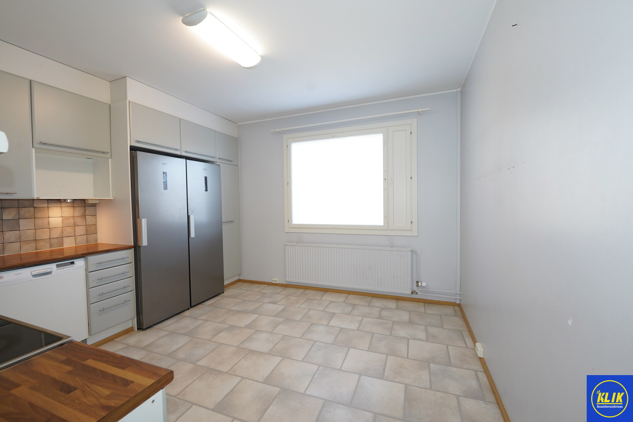erillinen keittiölaminaattitasot keittiössä, sähköliesi; liesi ja uuni erikseen; liesituuletin, astianpesukone (60cm), jääkaappi; pakastin, tilaa isolle ruokapöydälle; paljon kaappitilaa; paljon työskentelytilaa