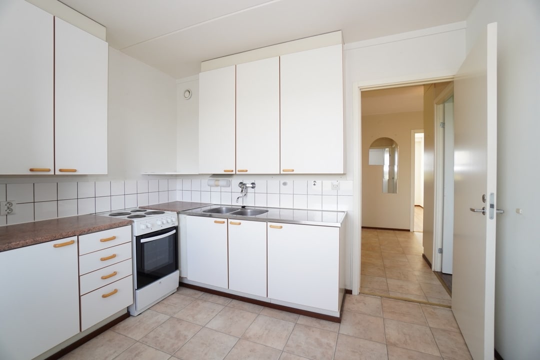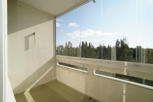 Keittiössä on hyvin kappitilaa ja olohuoneen kautta on kulku lasitetulle parvekkeelle. Makuuhuone on tarpeeksi tilava parisängylle ja erillinen vaatehuone tuo mainiosti säilytystilaa. Eteisessä on lisäksi kaapistoja säilytystä ajatellen.