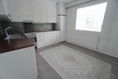 erillinen keittiö, laminaattitasot keittiössä, sähköliesi; liesituuletin, astianpesukone (60cm), jääkaappipakastin, paljon kaappitilaa; paljon työskentelytilaa