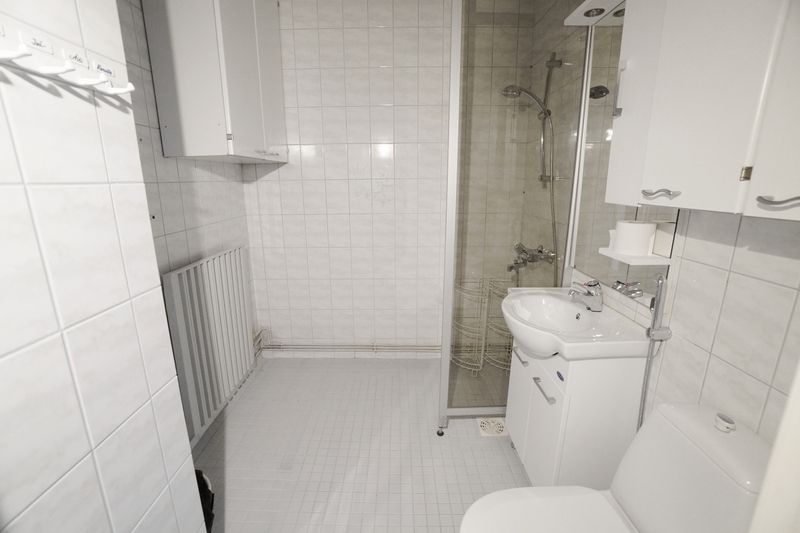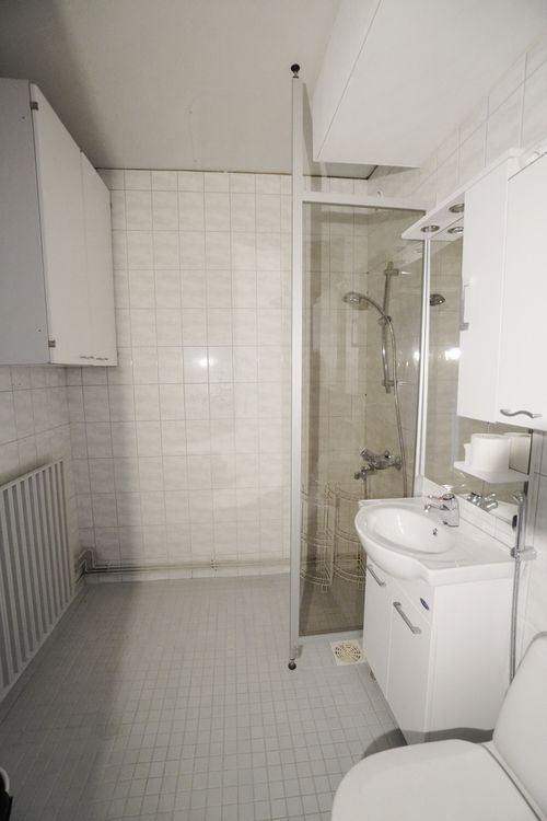 laattalattia; laattaseinä, allaskaappi; muuta säilytystilaa WC:ssä, suihku; suihkuseinä, pesukonevalmius,
