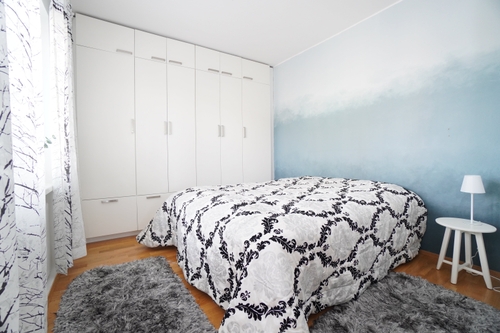 Asunnossa on iso olohuone, jonka yhteydessä on parveke. Makuuhuoneessa on sänky sekä työpiste valmiina asukkaan käyttöön. Myös toisessa makuuhuoneessa on sänky sekä koko seinän mitalta kaappitilaa.