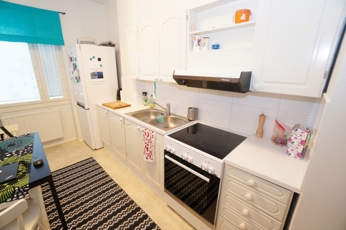 erillinen keittiö, laminaattitasot keittiössä, keraaminen- tai induktioliesi; liesituuletin, jääkaappipakastin