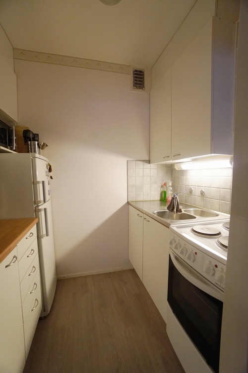 Tämä asunto on kauttaaltaan siistissä kunnossa ja neliöt on käytetty järkevästi. Keittokomero on hyvän kokoinen ja pinnat ovat siistit. Taloyhtiöön on tehty putkiremontti 2019, jonka yhteydessä kylpyhuoneet on kokonaan uusittu. Kylpyhuonenon tilava ja siellä paikka pesukoneelle.