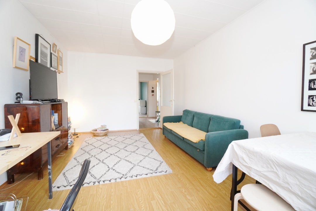 Tilavasta olohuoneesta on käynti ranskalaiselle parvekkeelle ja näkymät aukeavat sisäpihan suuntaan.