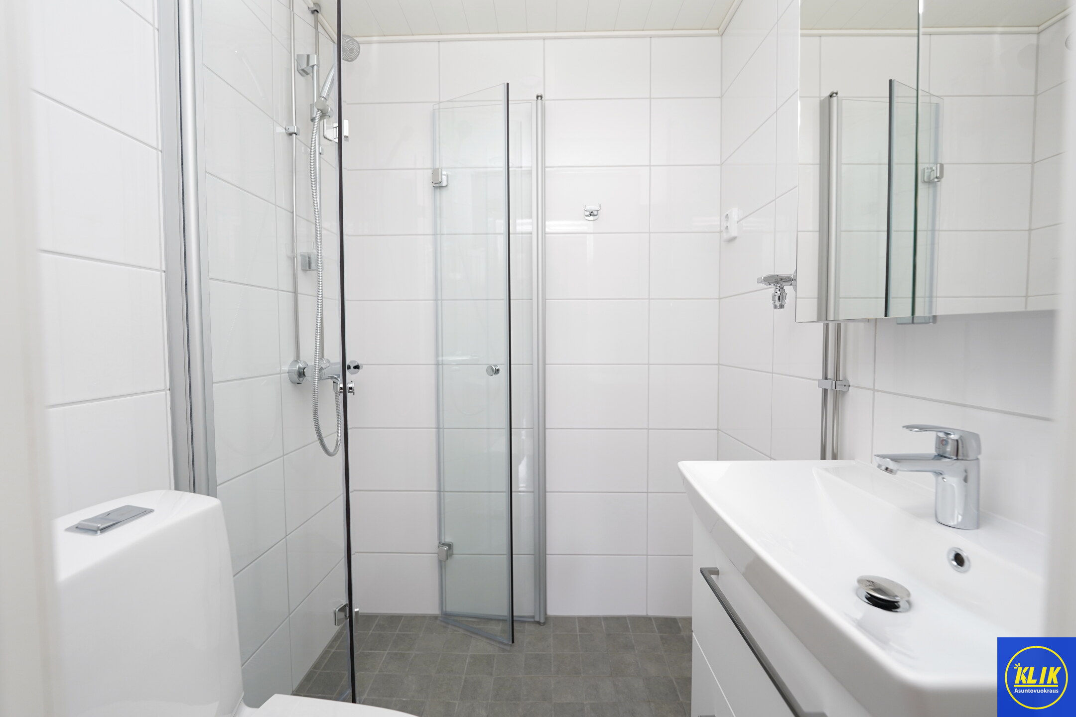 laattalattia; laattaseinä, , allaskaappi; peilikaappi, suihku; suihkuseinä, , pesukonevalmius, kylpyhuoneessa lattialämmitys