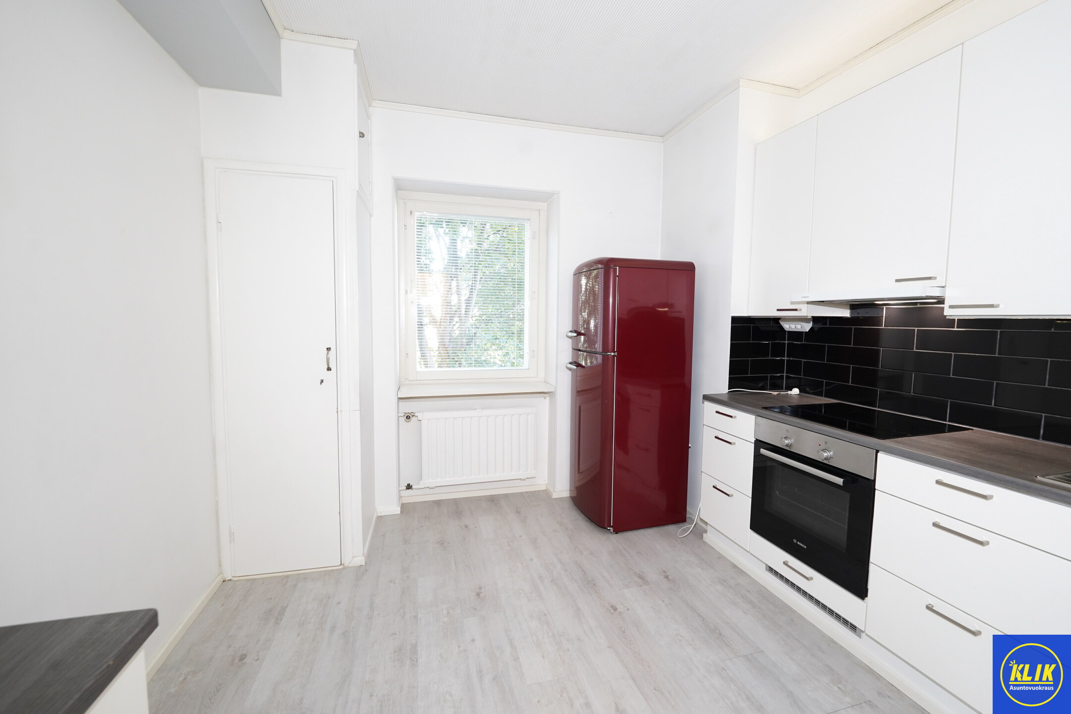erillinen keittiölaminaattitasot keittiössä, keraaminen- tai induktioliesi; keittotaso ja kalusteuuni; liesituuletin, , jenkkikaappi, tilaa isolle ruokapöydälle; paljon kaappitilaa; paljon työskentelytilaa; mikrohylly