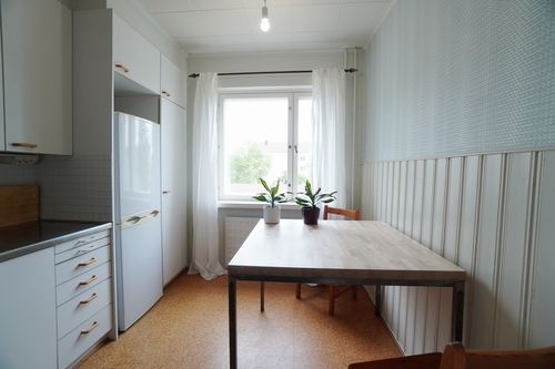 Hyvästä yhtiöstä tarjolla siistikuntoinen läpitalon kaksio. Asunnossa on tilava keittiö siisteillä kodinkoneilla ja tilaan mahtuu ruokapöytä. Olohuoneen kautta kulku parvekkeelle, josta on vehreät näkymät sisäpihan suuntaan.
