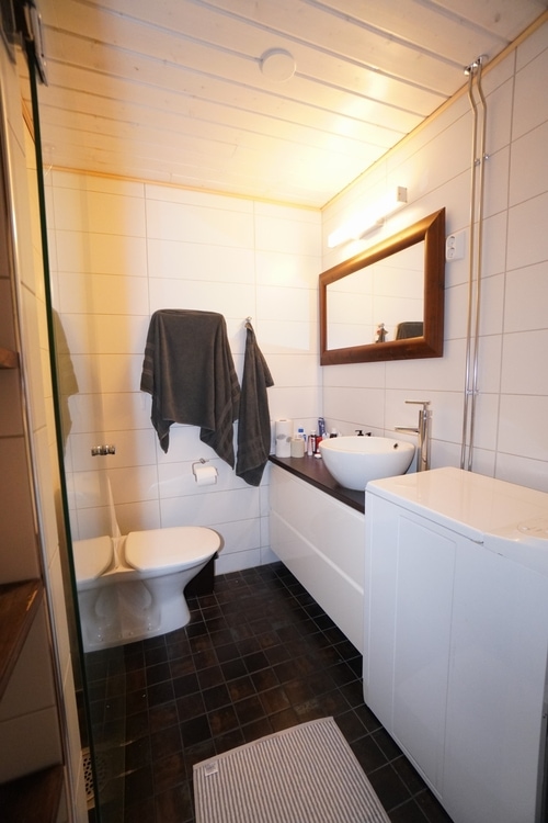 Pesuhuone uusittu kauttaaltaan putkiremontin yhteydessä muutama vuosi sitten ja pesukone on valmiina.