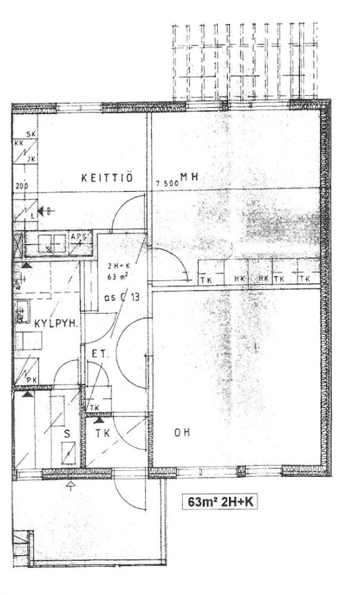 erillinen keittiö, laminaattitasot keittiössä, sähköliesi; liesituuletin, pesukoneliitos, jääkaappipakastin, tilaa isolle ruokapöydälle; paljon kaappitilaa; mikrohylly