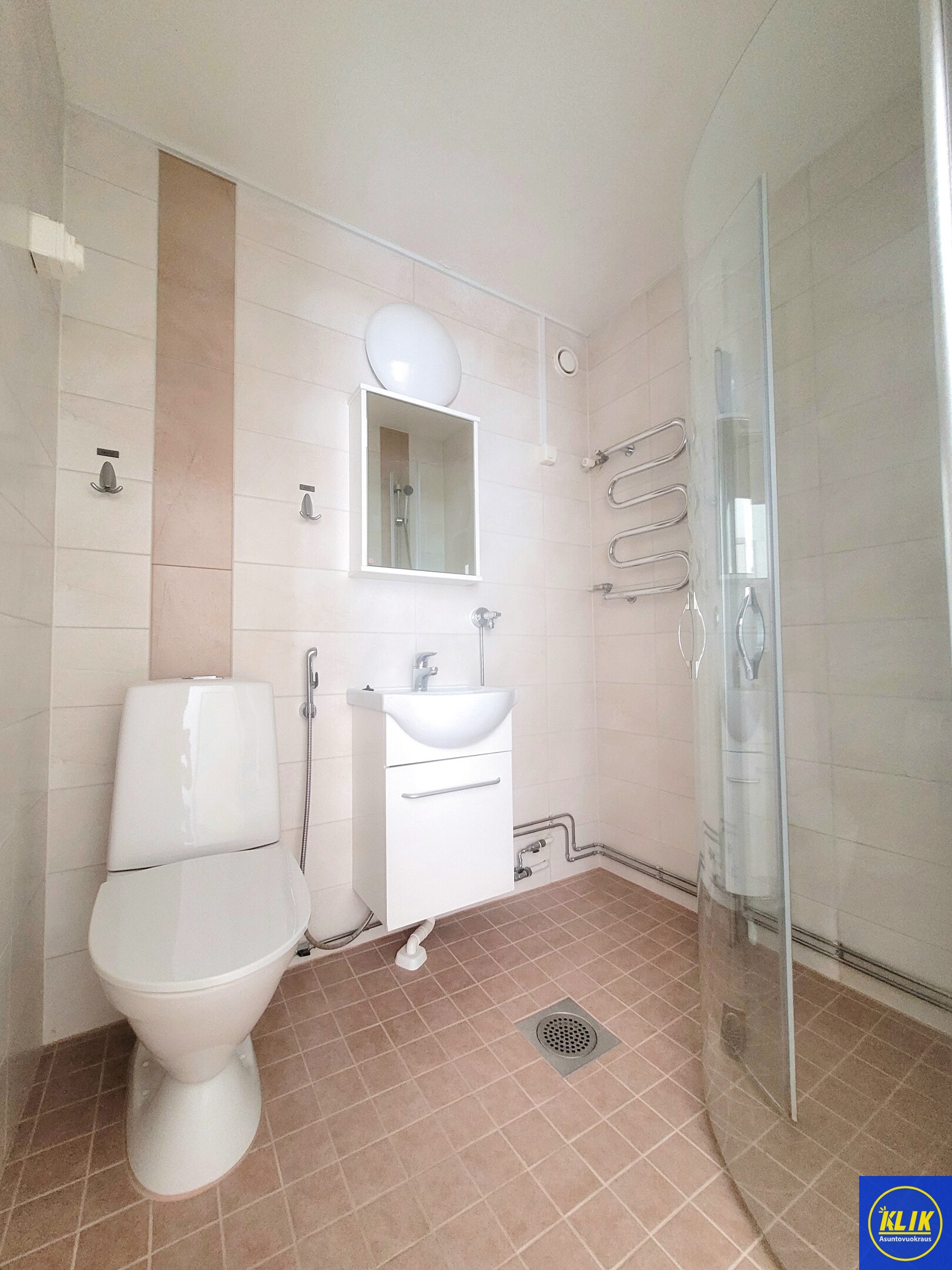 laattalattia; laattaseinä, , allaskaappi; peilikaappi, suihku; suihkuseinä, , pesukonevalmius, kylpyhuoneessa kuivauspatteri