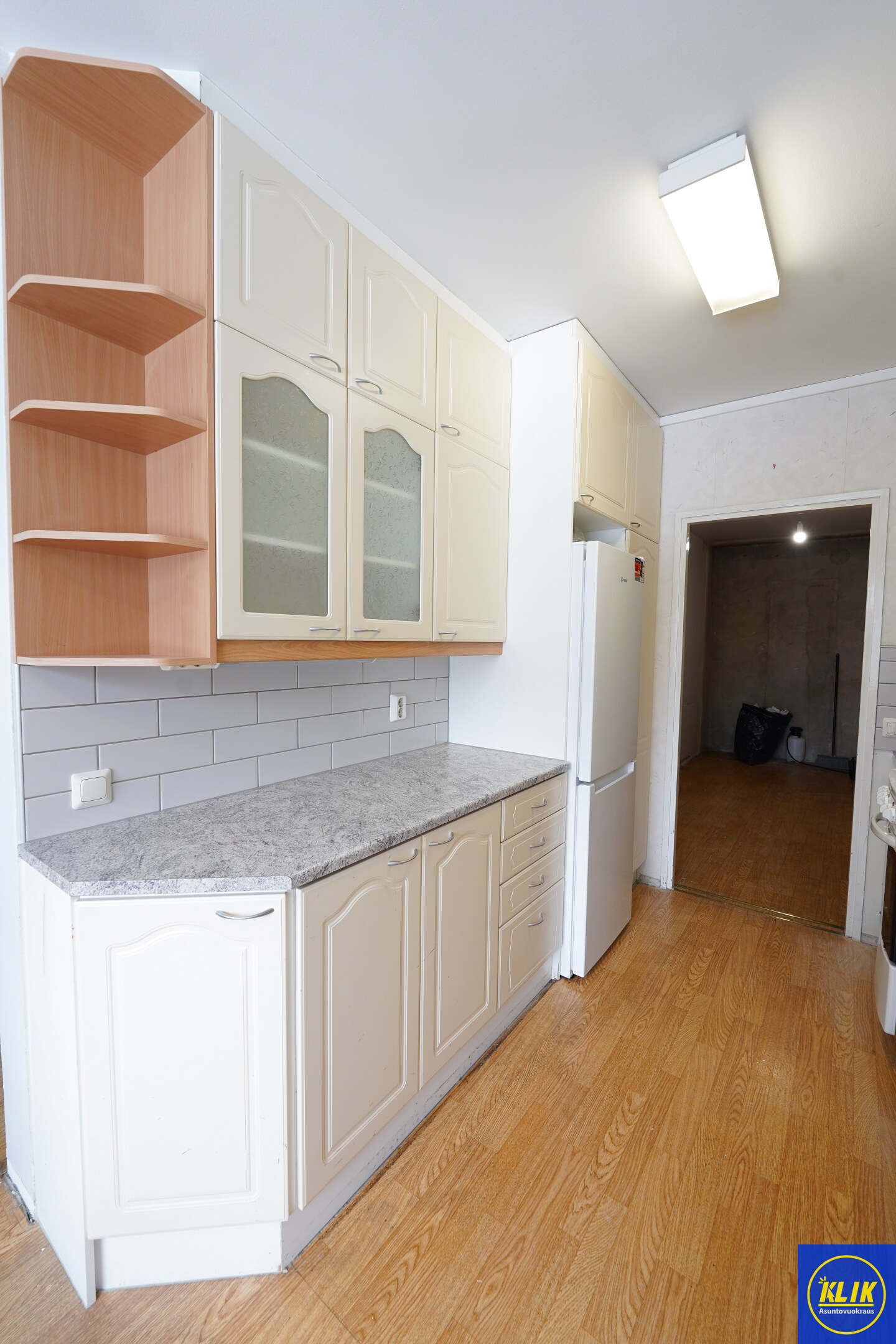 erillinen keittiölaminaattitasot keittiössä, sähköliesi; liesituuletin, astianpesukone (60cm), jääkaappipakastin, tilaa isolle ruokapöydälle; paljon kaappitilaa; paljon työskentelytilaa; suuri tiskipöytä; mikrohylly