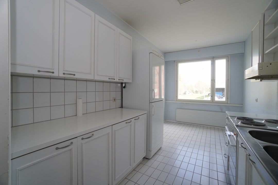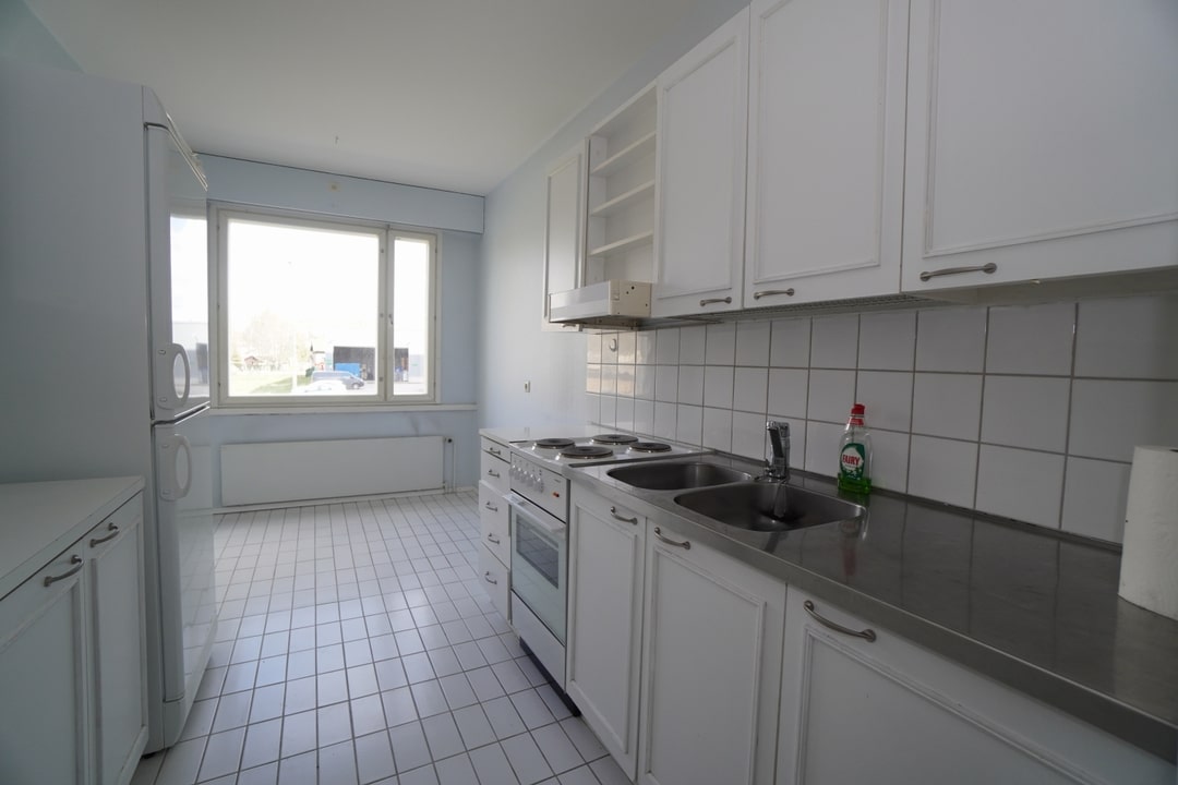 Molemmat huoneet ovat tilavia. Asunnon pinnat ovat kauttaaltaan perus siistit, seinät maalattu / tapetoitu ja lattiat parkettia. Tilavasta olohuoneesta käynti parvekkeelle, joka on sisäpihan puolelle. Keittiössä on hyvin kaappitilaa ja ruokapöytä mahtuu hyvin keittiön yhteyteen. Kuvista poiketen keittiössä on astiapesukone.