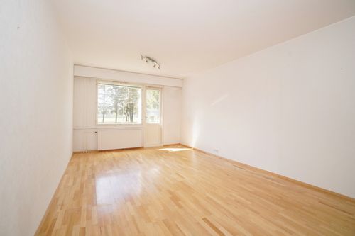 Molemmat huoneet ovat tilavia. Asunnon pinnat ovat kauttaaltaan perus siistit, seinät maalattu / tapetoitu ja lattiat parkettia. Tilavasta olohuoneesta käynti parvekkeelle, joka on sisäpihan puolelle. Keittiössä on hyvin kaappitilaa ja ruokapöytä mahtuu hyvin keittiön yhteyteen. Kuvista poiketen keittiössä on astiapesukone.