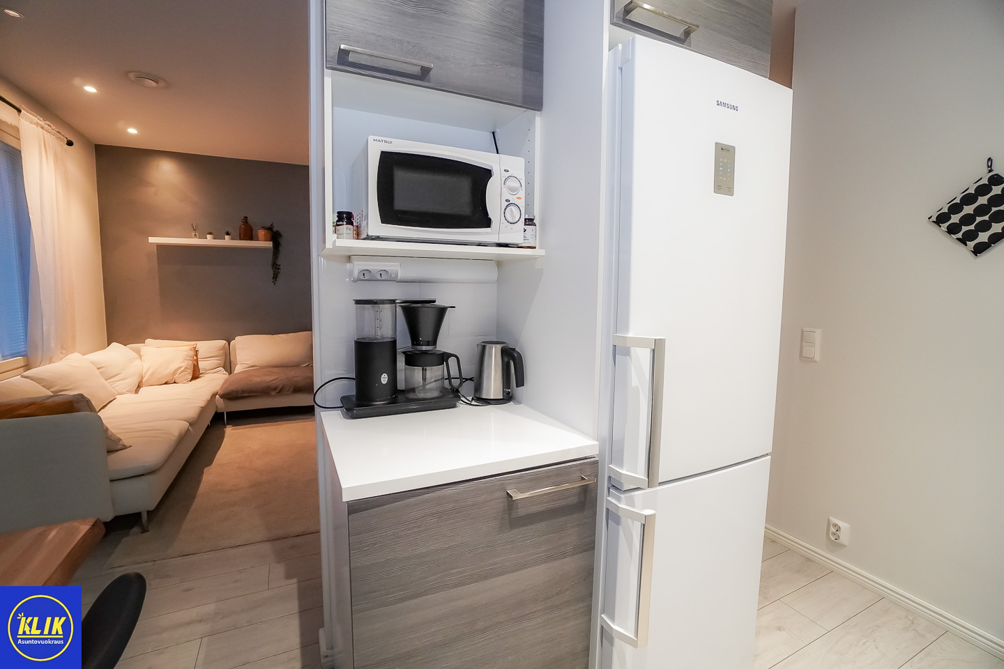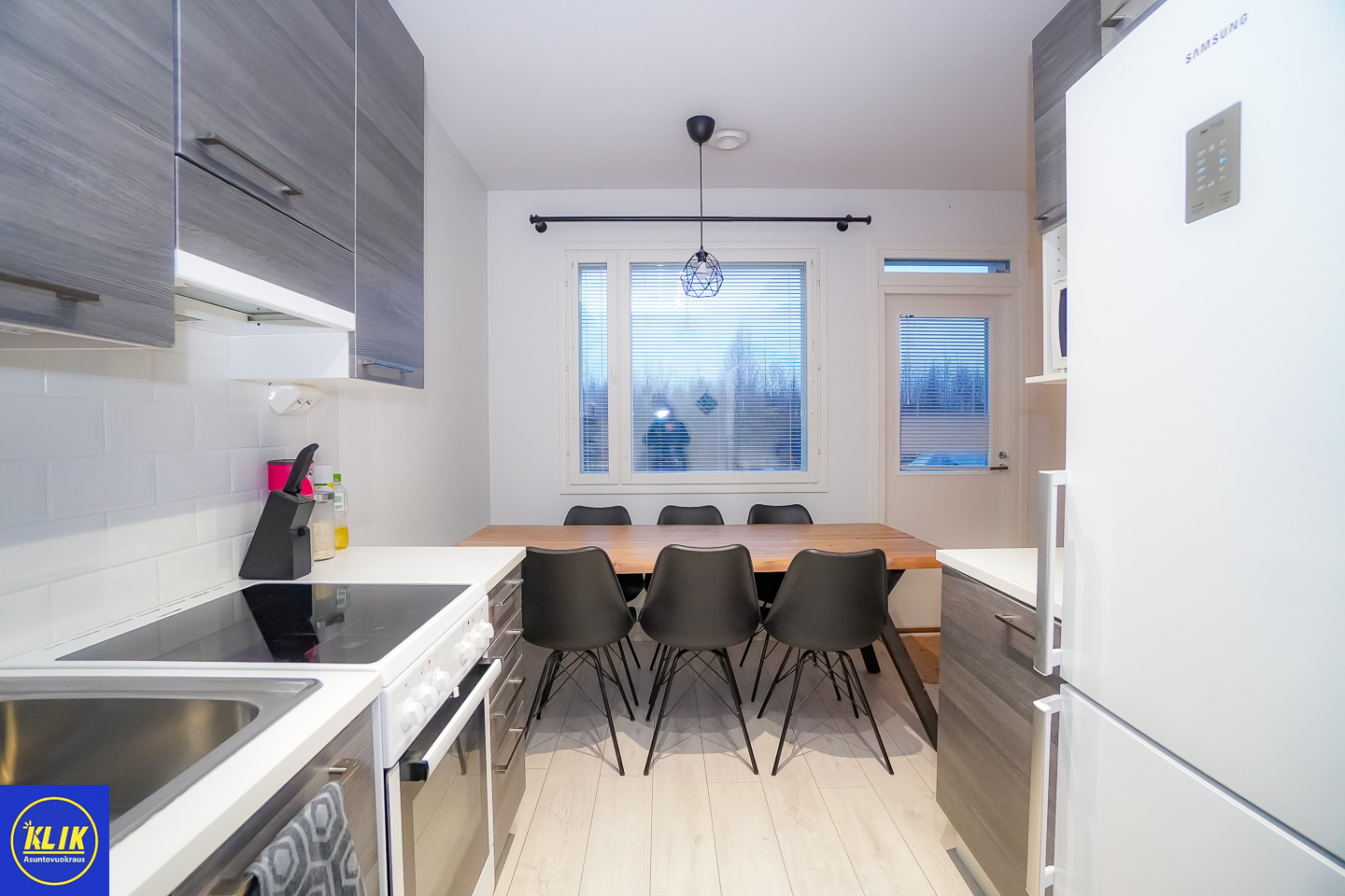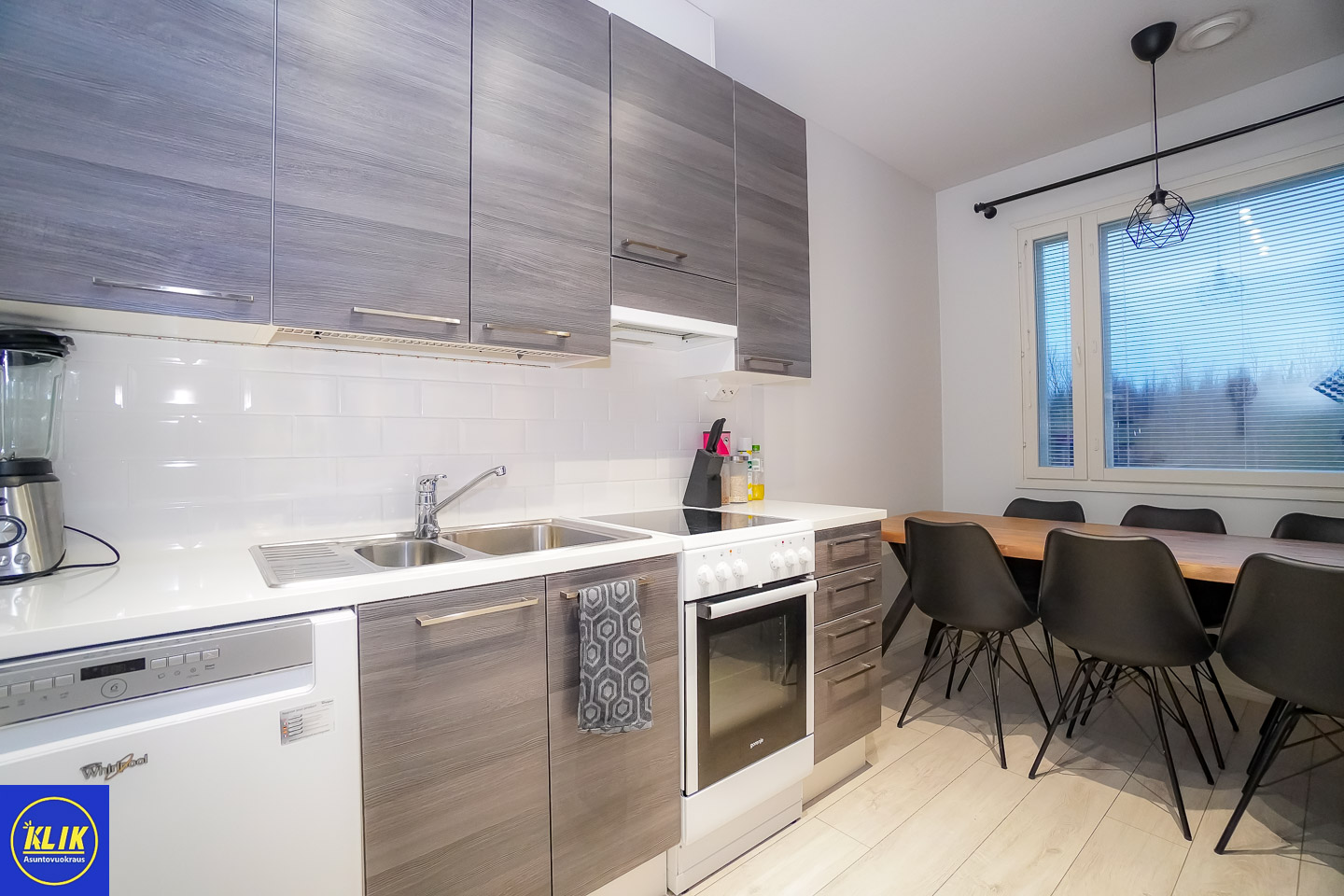 erillinen keittiölaminaattitasot keittiössä, keraaminen- tai induktioliesi; liesituuletin, astianpesukone (60cm), jääkaappipakastin, mikrohylly , , , , , ,