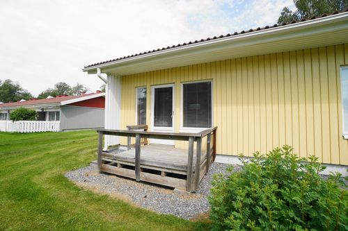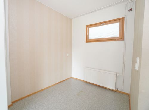 Sängyn saa alkoviin mahtumaan vaivatta. Olohuoneesta on käynti takapihan terassille. Terassilta on kauniit näkymät pihaan. Lisäksi osana asuntoa on erillisvarasto ulko-oven vieressä.