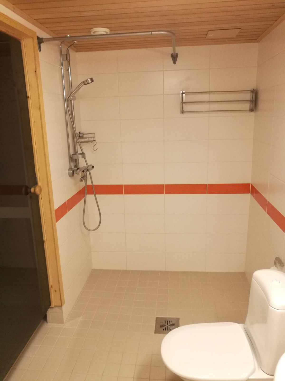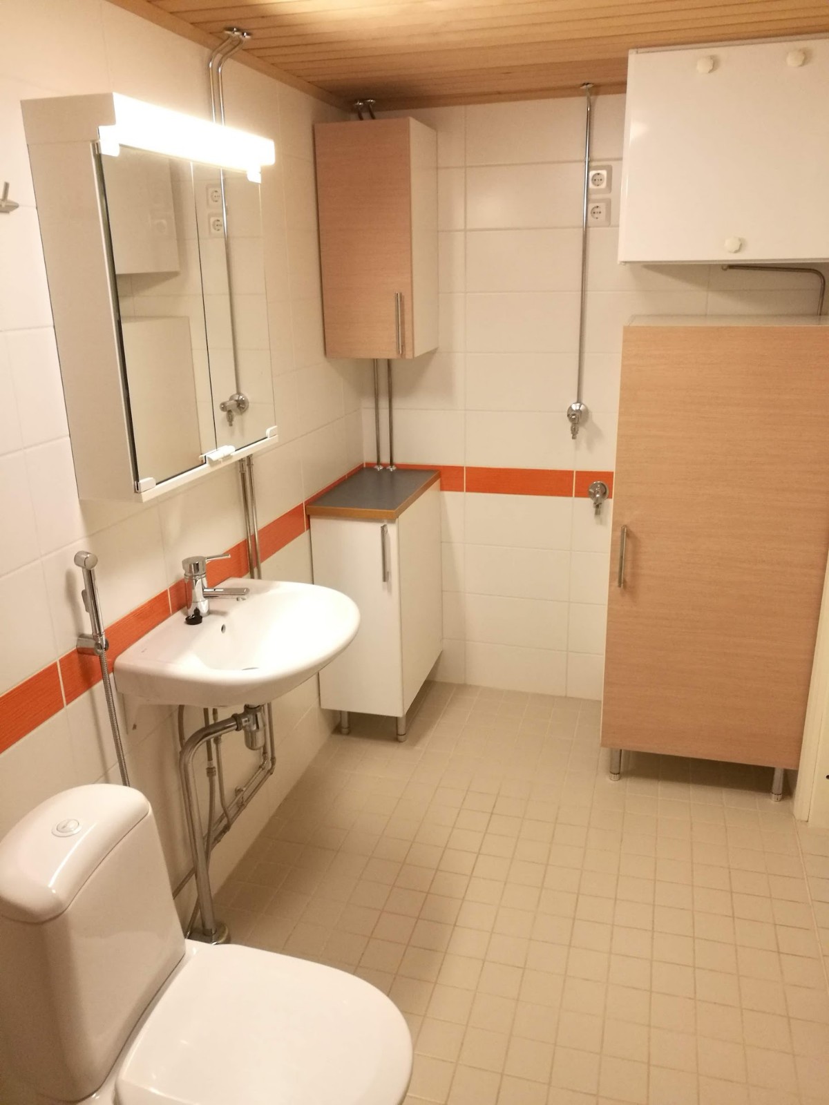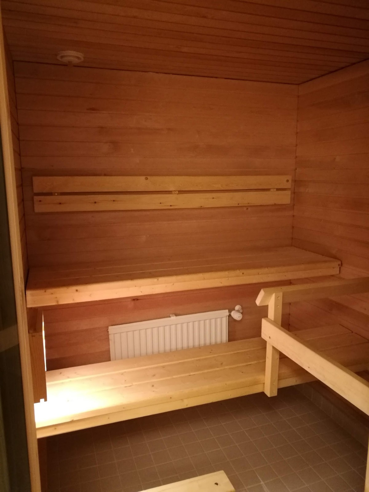 laattalattia; laattaseinä, peilikaappi; muuta säilytystilaa WC:ssä, suihku, pesukonevalmius, lattialämmitys; sauna