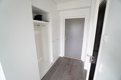 Valoisa asunto vuonna 2017 valmistuneesta taloyhtiöstä. Tässä yksiössä on siistit vaaleat seinäpinnat sekä lattiat.