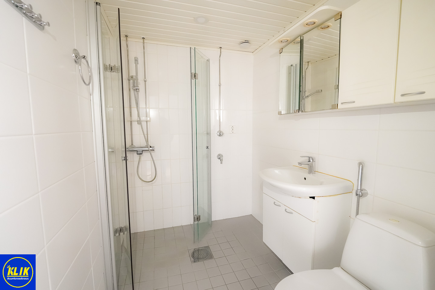 laattalattia; laattaseinä, , allaskaappi; peilikaappi; muuta säilytystilaa WC:ssä, suihku; suihkuseinä, , pesukonevalmius; taloyhtiössä pesutupa; taloyhtiössä kuivaushuone, kylpyhuoneessa lattialämmitys