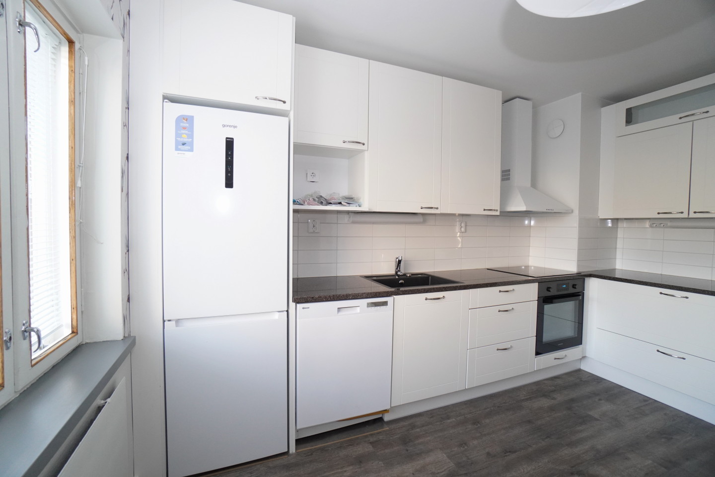 erillinen keittiökivitasot keittiössä, keraaminen- tai induktioliesi; liesi ja uuni erikseen; liesituuletin, astianpesukone (60cm), jääkaappipakastin, , , , , , ,