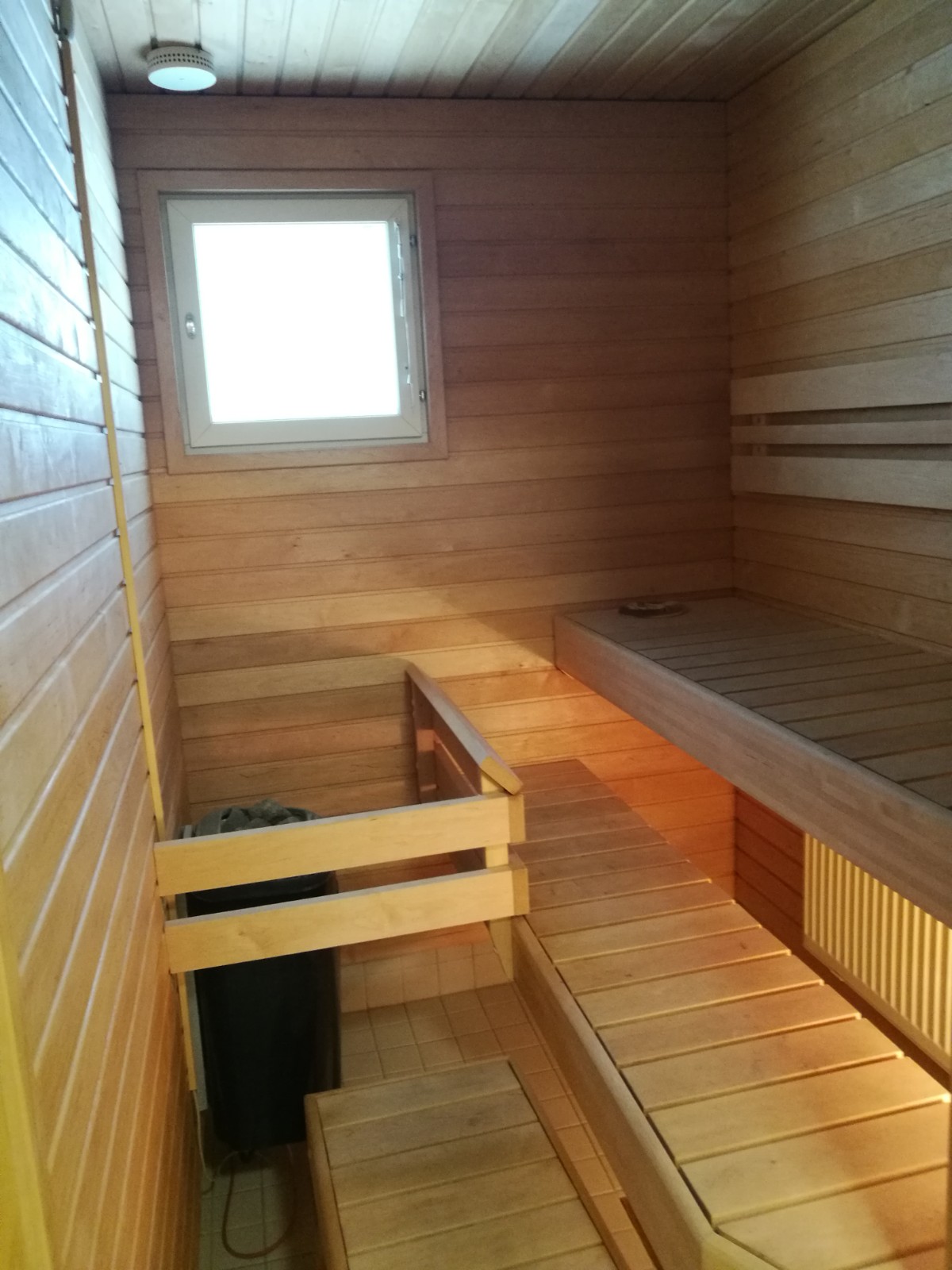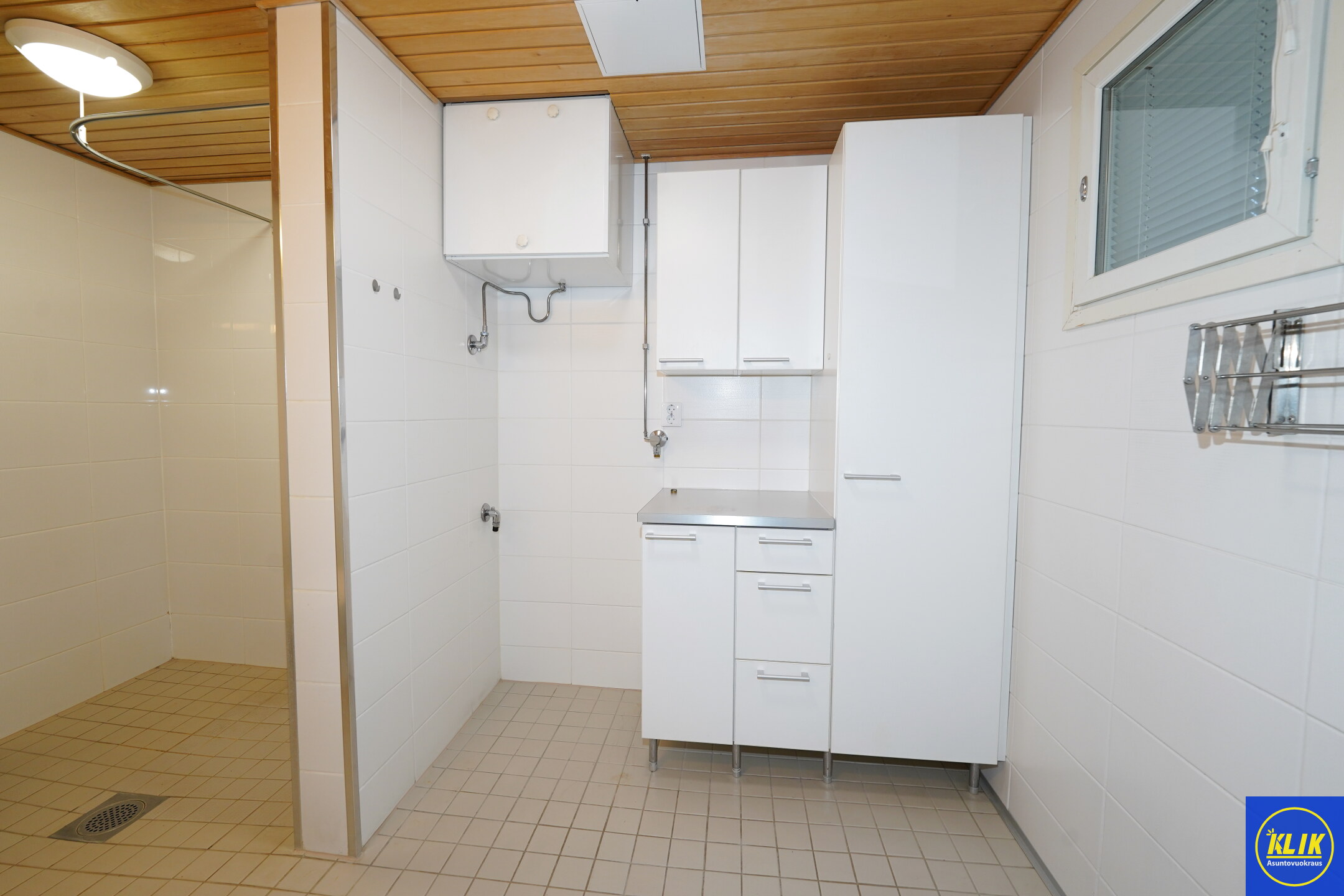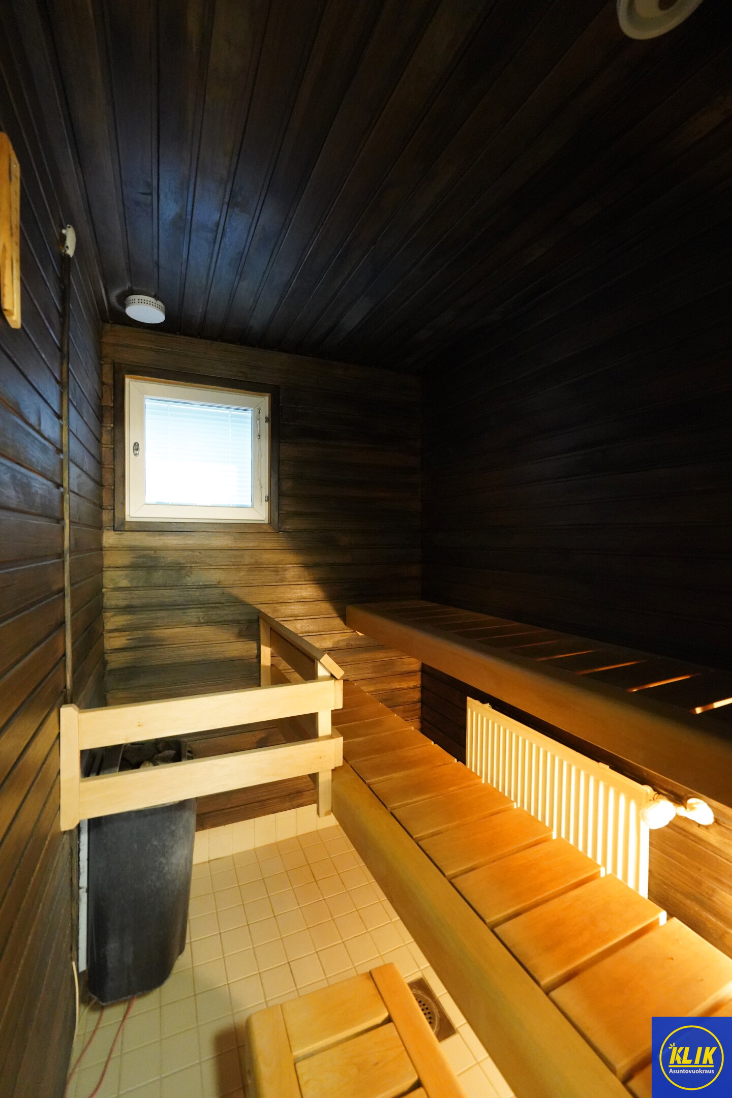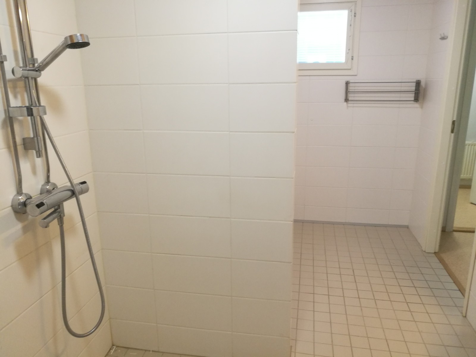 laattalattia; laattaseinä, myös erillinen WC, allaskaappi; peilikaappi; muuta säilytystilaa WC:ssä, suihku, pesukonevalmius, lattialämmitys; sauna