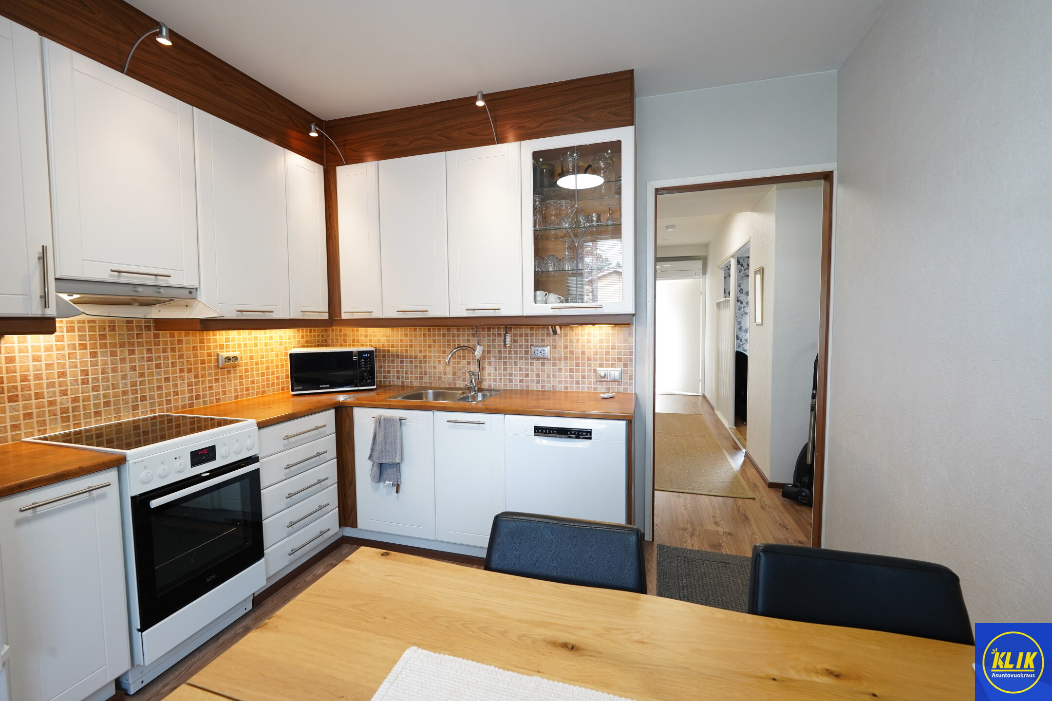 erillinen keittiölaminaattitasot keittiössä, keraaminen- tai induktioliesi; liesituuletin, astianpesukone (60cm), jääkaappipakastin, tilaa isolle ruokapöydälle; paljon kaappitilaa; paljon työskentelytilaa; mikro valmiina keittiössä