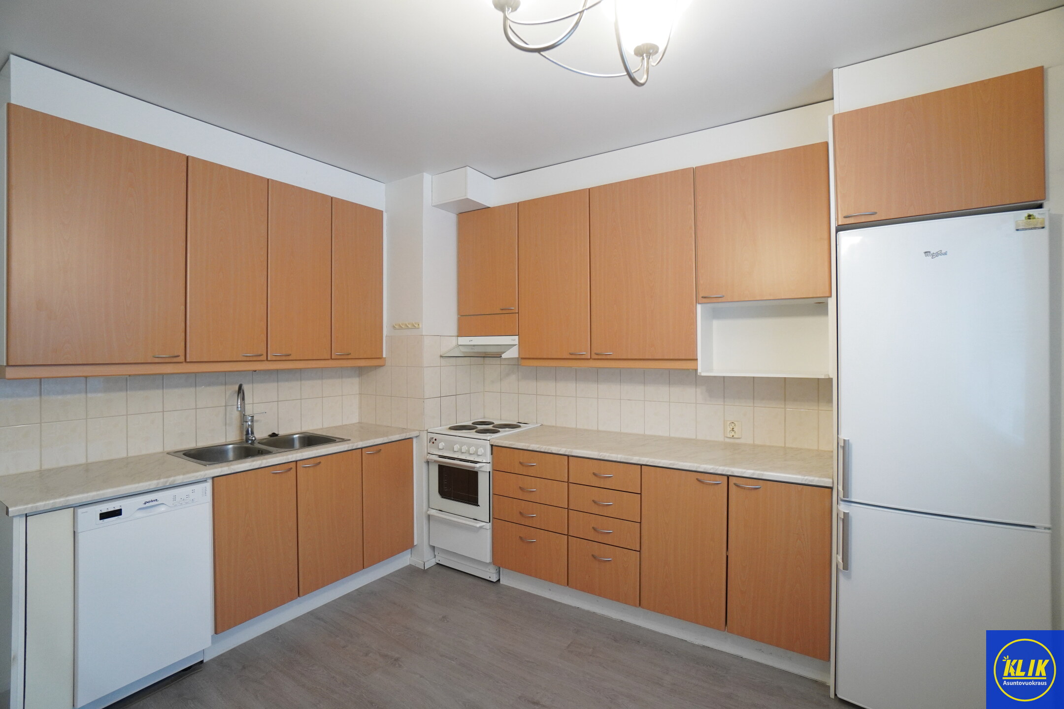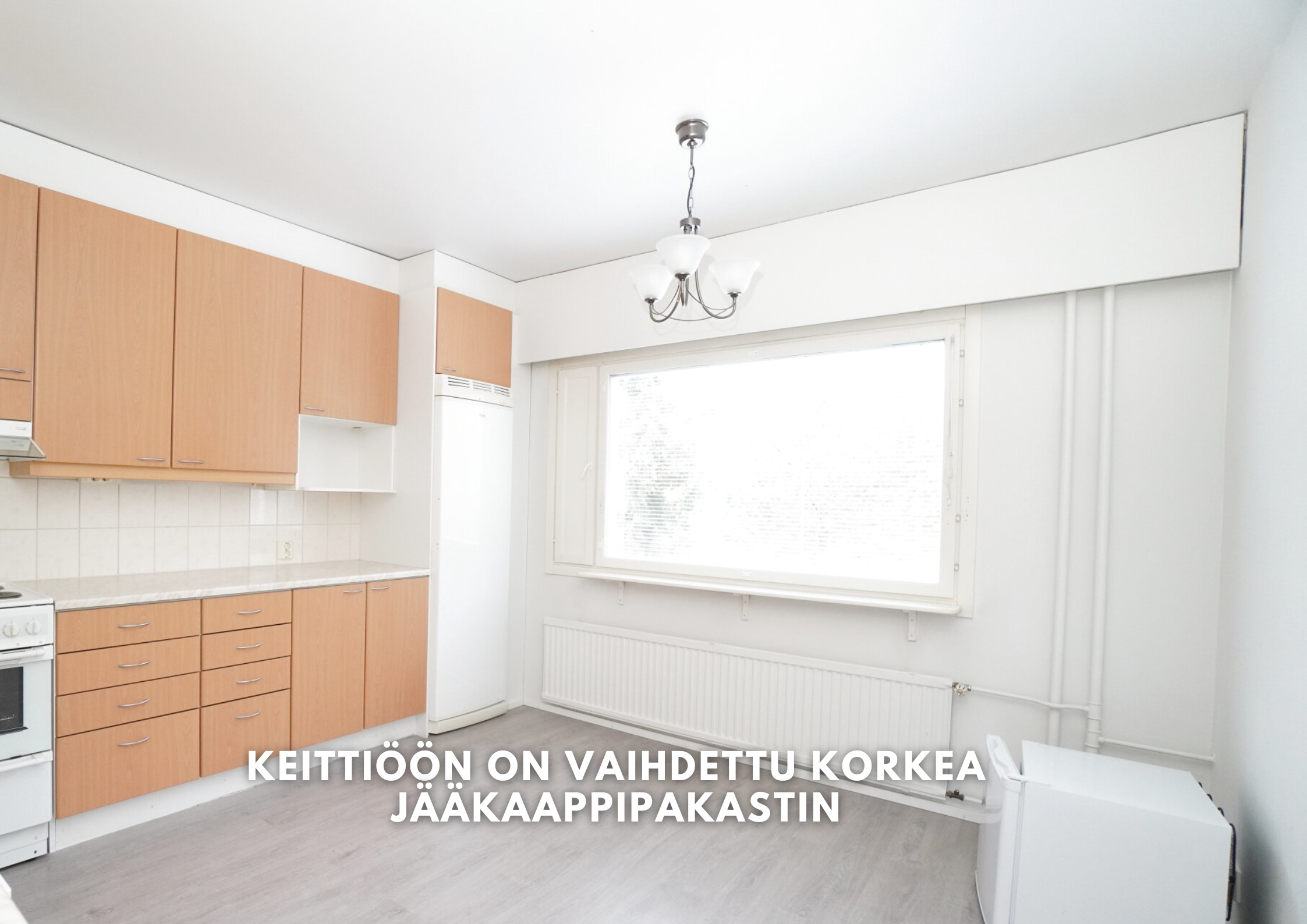 erillinen keittiölaminaattitasot keittiössä, sähköliesi; liesituuletin, astianpesukone (45cm), jääkaappi, paljon kaappitilaa; paljon työskentelytilaa; mikrohylly