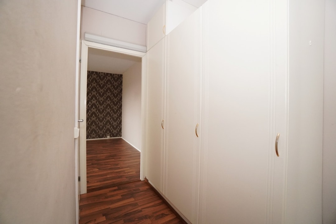 Siistikuntoinen asunto talon ensimmäisestä kerroksesta. Asunto kattaa tilavan olohuoneen, keittiö, kylpyhuoneen, makuuhuoneen sekä ison vaatehuoneen. Lattiassa on kaunis laminaatti ja seinäpinnat ovat vaaleat. Keittiössä on hyvin kaappeja ja ruokapöytä mahtuu olohuoneen puolelle. Parveke on sisäpihan suuntaan.