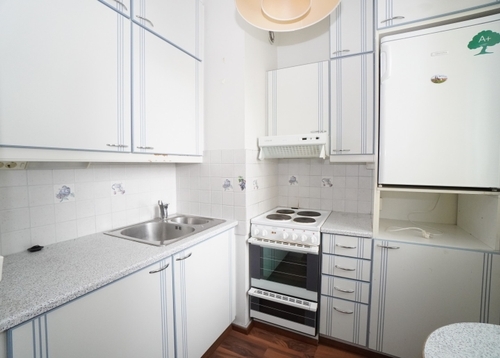 keittokomero, laminaattitasot keittiössä, sähköliesi; liesituuletin, jääkaappi