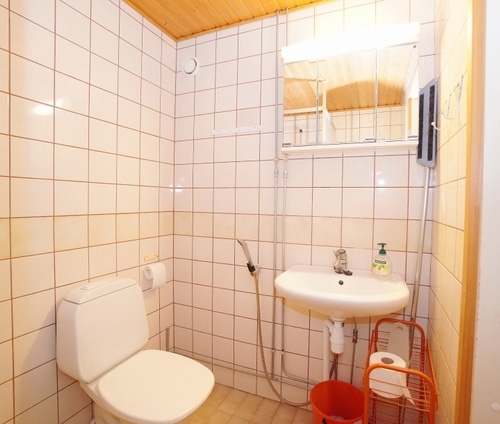 laattalattia; laattaseinä, peilikaappi, suihku; suihkuseinä, pesukonevalmius, lattialämmitys
