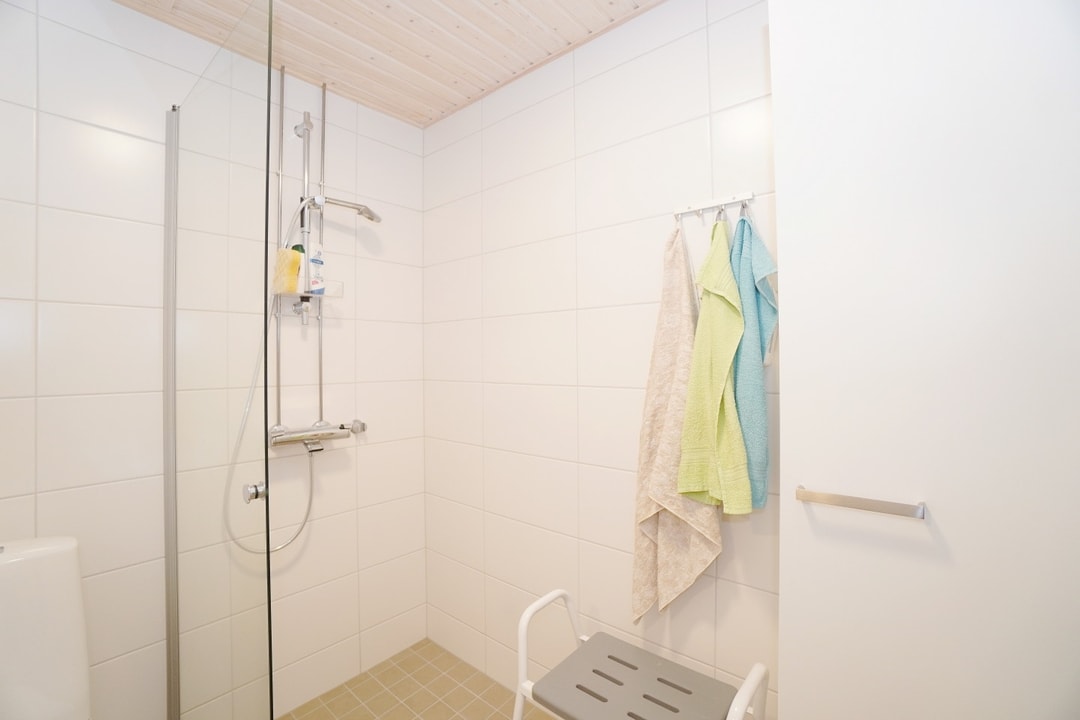 laattalattia; laattaseinä, allaskaappi; peilikaappi; muuta säilytystilaa WC:ssä, suihku; suihkuseinä, pesukonevalmius, lattialämmitys