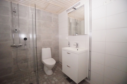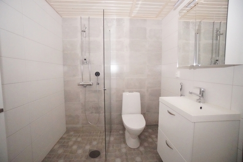 laattalattia; laattaseinä, allaskaappi; peilikaappi, suihku; suihkuseinä, pesukonevalmius, lattialämmitys