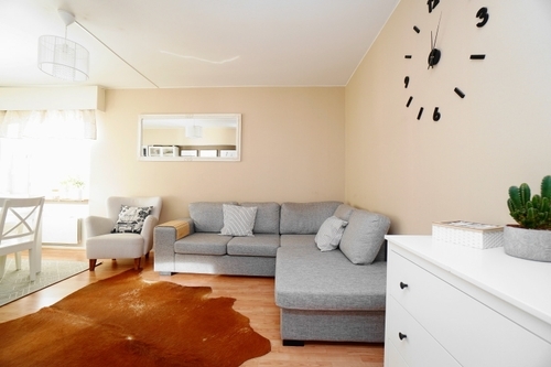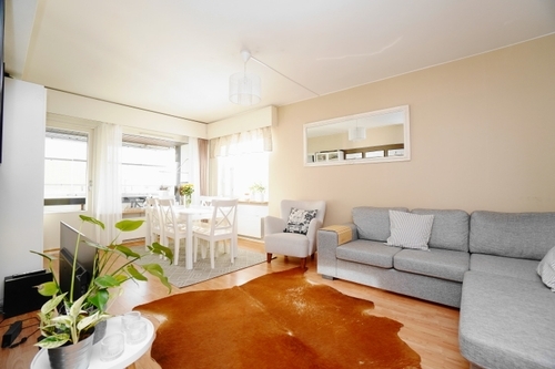 Avaran olohuoneen yhteyteen mahtuu hyvin isompikin ruokailuryhmä ja isokin sohvakalusto. Olohuoneen yhteydestä käynti lasitetulle parvekkeelle, joka on itään.