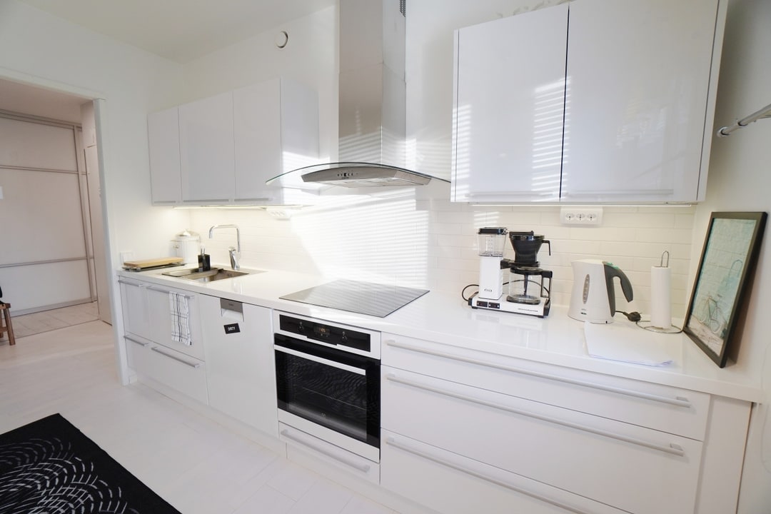 erillinen keittiö, laminaattitasot keittiössä, keraaminen- tai induktioliesi; liesi ja uuni erikseen; liesituuletin, astianpesukone (60cm), jääkaappi; pakastin, sauna; avattava ikkuna; rättipatteri