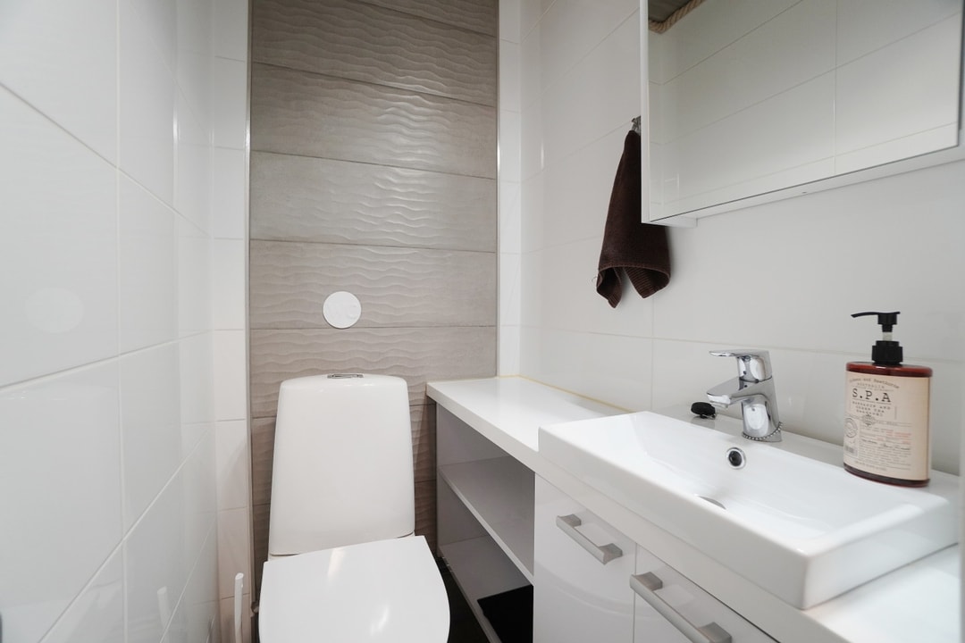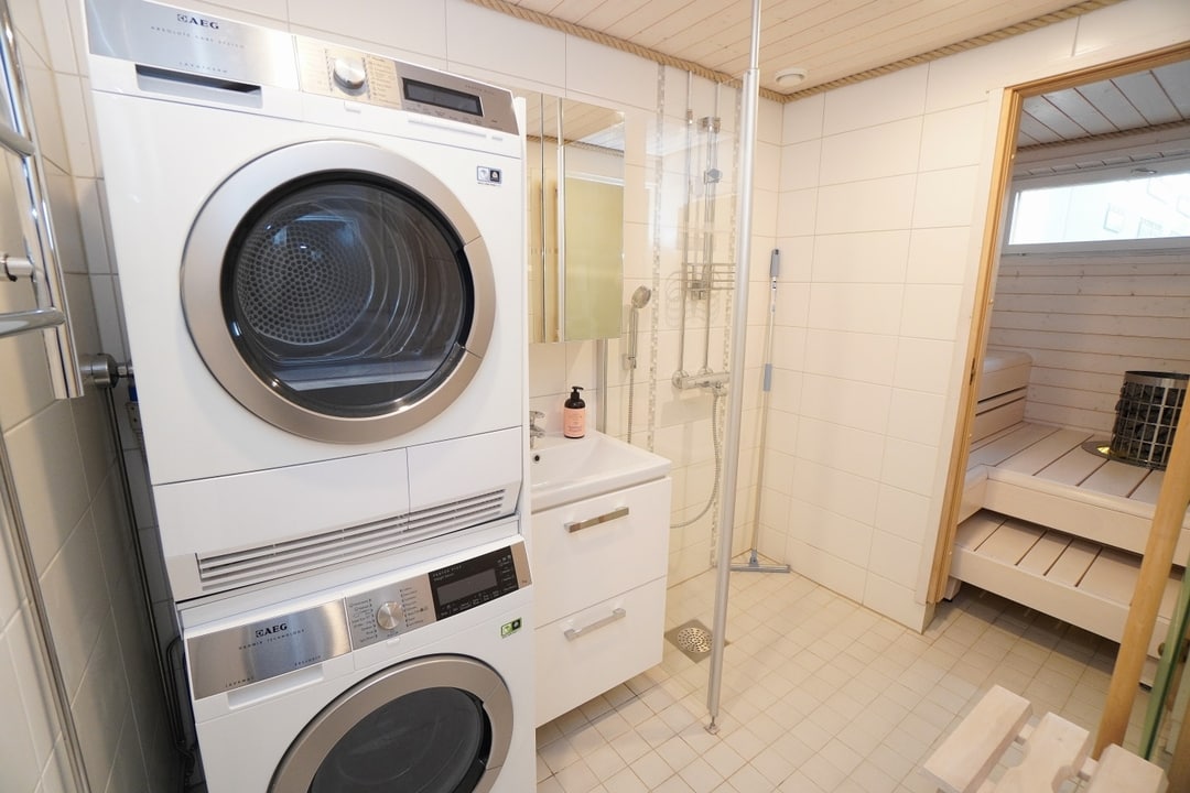 Remontoidun kylpyhuoneen yhteydessä on oma sauna. Pesutorni kuuluu kalustukseen. Lisäksi asunnossa on erillinen wc.