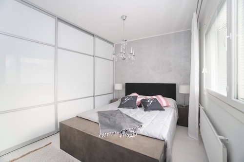 Koko asunnossa on kaunis vaalea vinyylilankkulattia. Makuuhuoneen puolella on isot liukuovikaapistot, samoin eteisessä, joten kaappitilaa on reilusti.